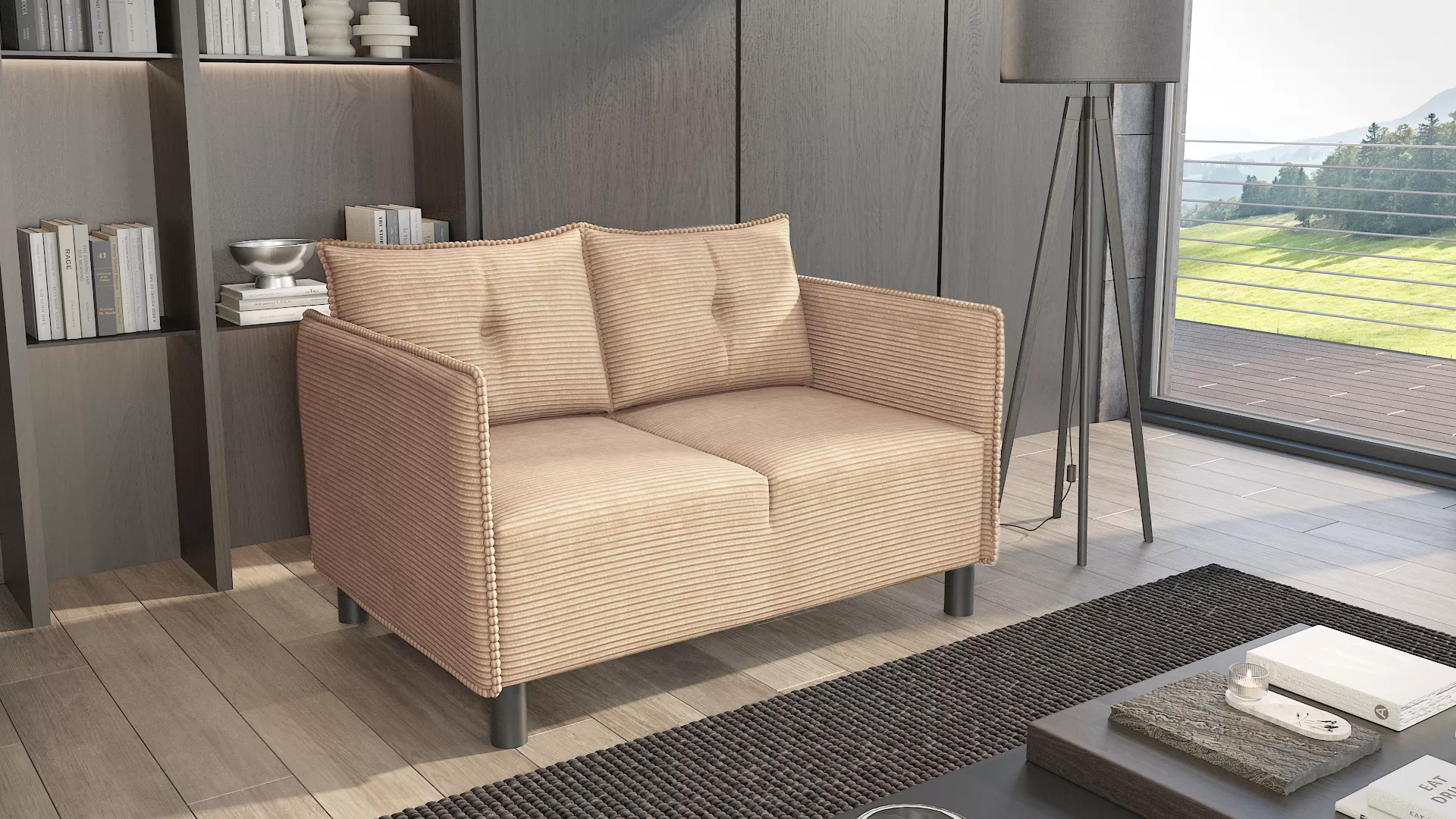 Dvoumístná pohovka MAELLA díky svým vysokým nožkám dodá místnosti pocit lehkosti a elegance. Pohovka je potažená látkou velmi příjemnou na dotek, což ještě více zpříjemní její každodenní používání.