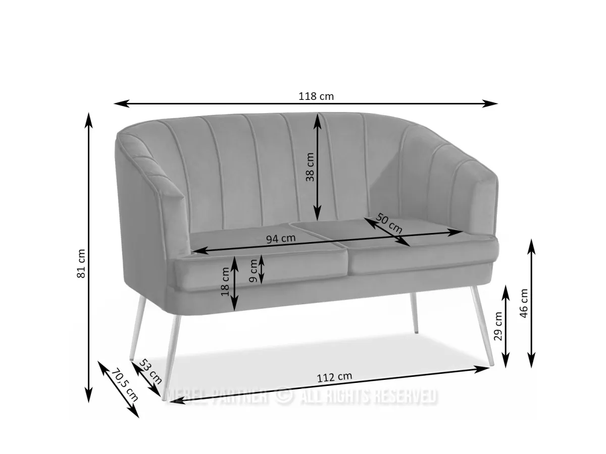 Dvoukřeslo RUBRAS se hodí zejména do moderních kanceláří nebo do stylových obývacích pokojů. Zaujme svým designovým prošíváním a zlatými kovovými nohami.