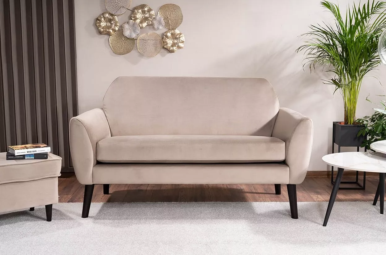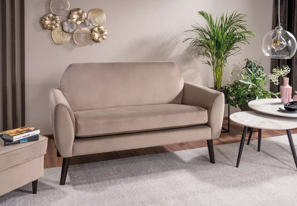 Stylová pohovka FLORENTINA nabízí pohodlné sezení pro 2 osoby. Kvalitu zpracování podtrhují vysoké nožky z masivu.