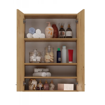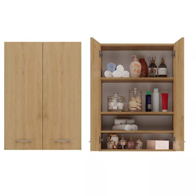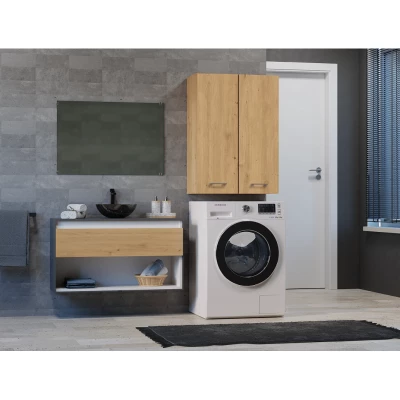 Horní koupelnová skříňka MARGO vyřešení nedostatek místa v koupelně, kde efektivně využije volného místa nad pračkou. Za dvířky skříňky se nachází prostorné police, které mohou sloužit k uložení pracích prostředků i ručníků.