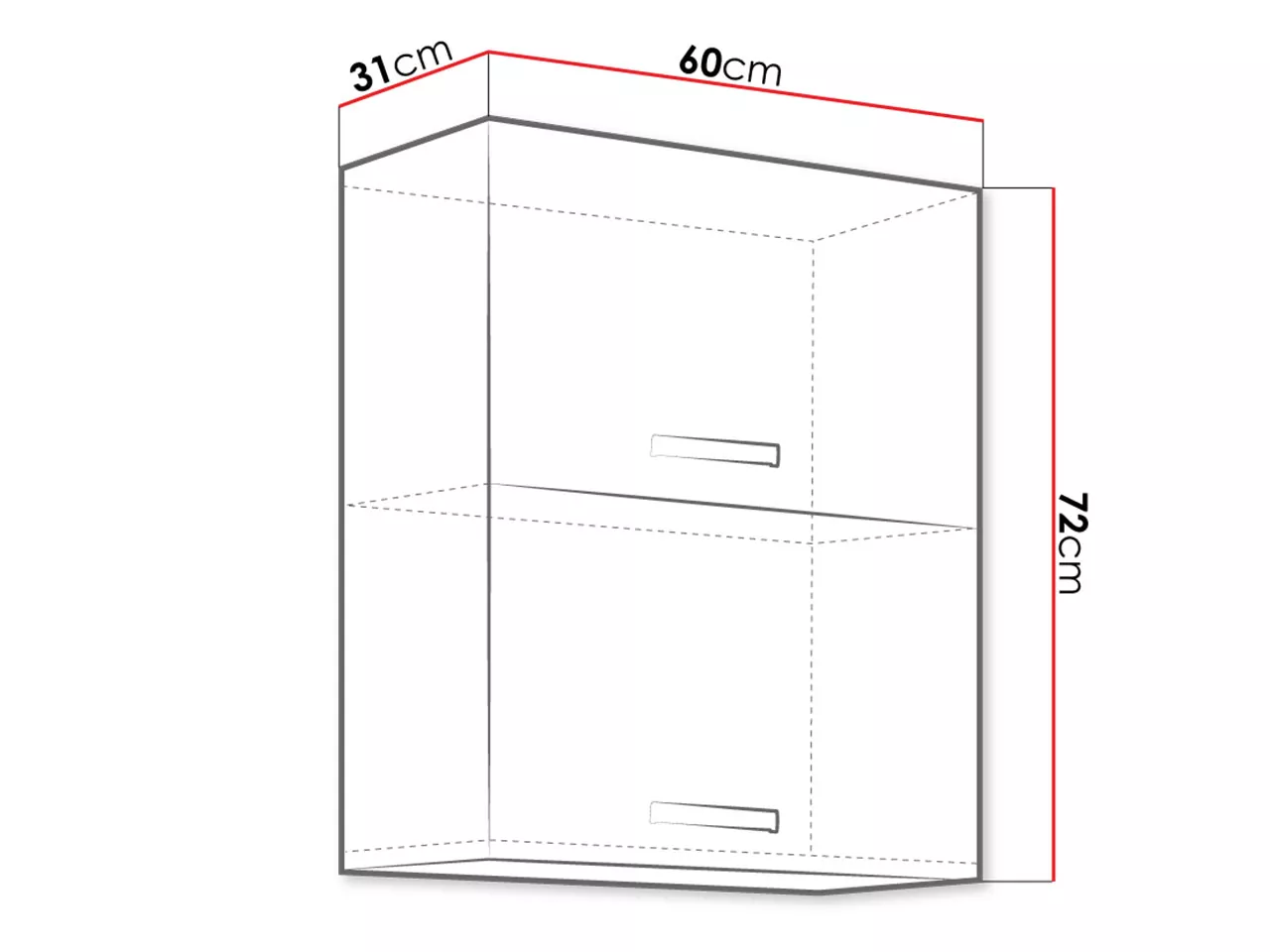 Horní dvoudveřová kuchyňská skříňka GENJI je vyrobená z vysoce kvalitních komponentů, které zaručují vysokou odolnost. Skvěle se hodí jako šikovný úložný prostor například pro kořenky, ale i doplňky a kuchyňské náčiní.