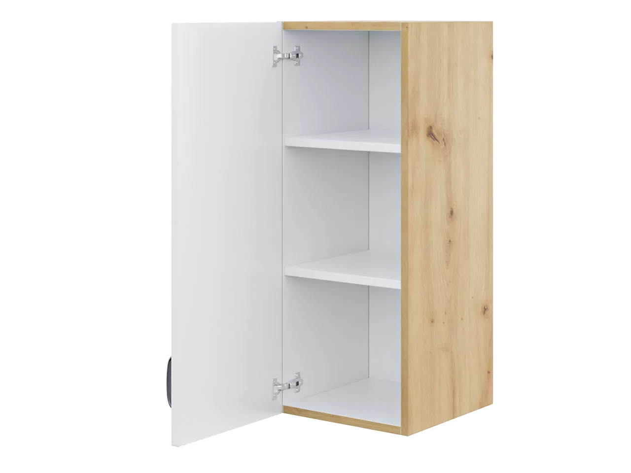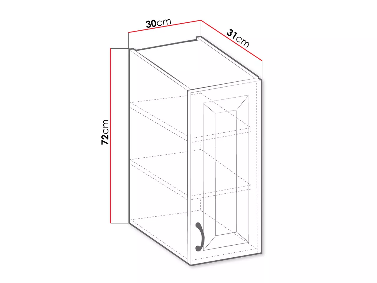 Horní kuchyňská skříňka FRYZIA díky svým kompaktním rozměrům skvěle využije i malý prostor v kuchyni. Je vybavena 2 funkčními policemi a poskytuje dostatek prostoru pro uložení koření, sklenic a dalších drobných kuchyňských potřeb.