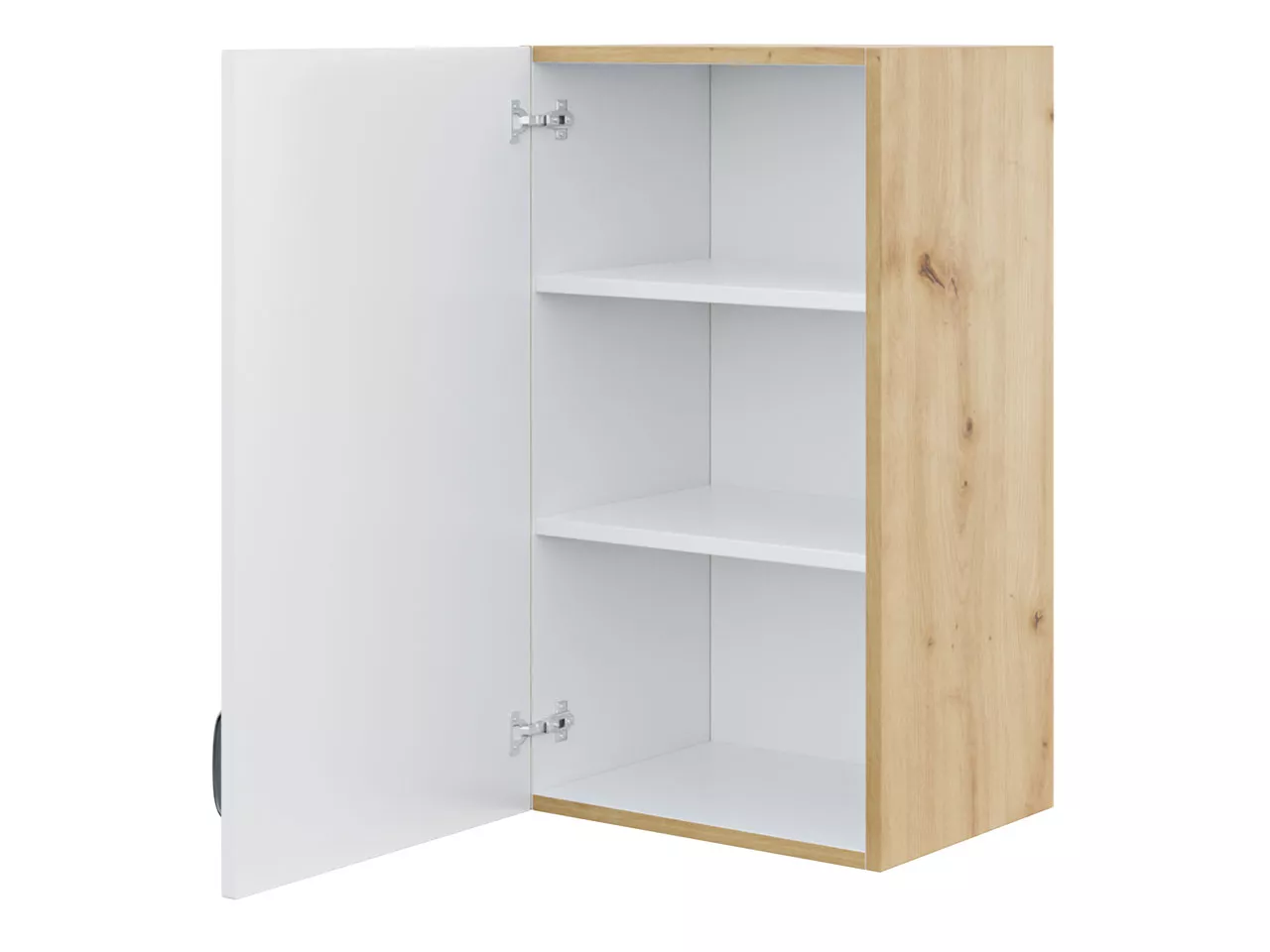 Horní policová kuchyňská skříňka FRYZIA nabízí 2 prostorné police, které umožňují pohodlné ukládání nádobí, koření a potravinářských výrobků. Dvířka jsou vybavena systémem tichého dovírání, což umožňuje hladkou a nehlučnou manipulaci.