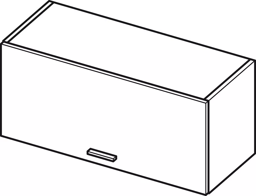 Závěsná kuchyňská skříňka ADAMA je moderním kusem do kuchyně. Dvířka se otevírají směrem nahoru. Součástí skříňky je plynový píst na dvířka a otevírání pomocí systému tip-on.