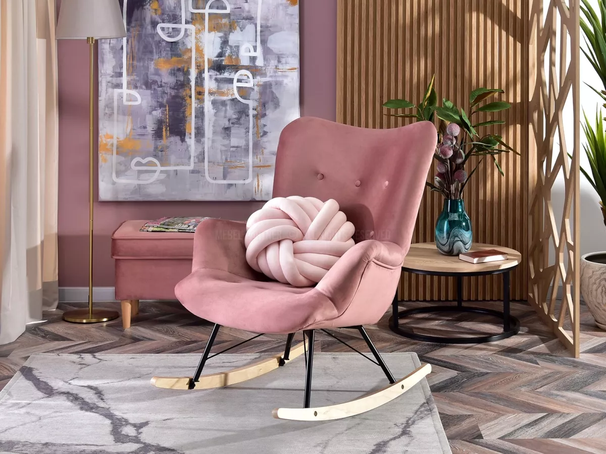 Houpací křeslo ENAS - pastelově růžové / černé / buk