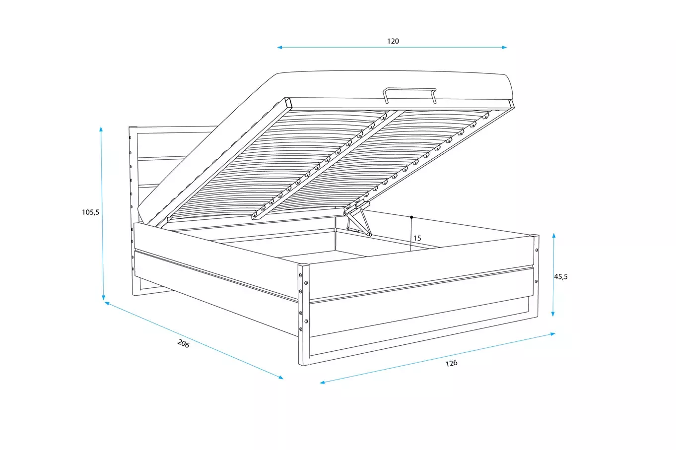 Jednolůžková postel s matrací BEATRICE 120x200 se hodí do všech moderních studentských pokojů. Úložný prostor se nachází pod vyklápěcím roštem.