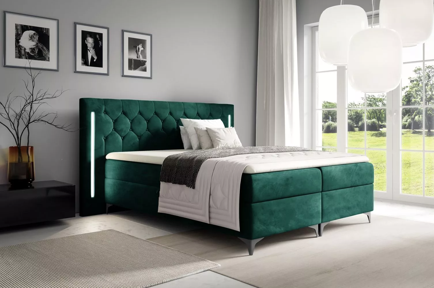 Vysoká jednolůžková postel 120x200 ELIANE s LED osvětlením - zelená + topper ZDARMA