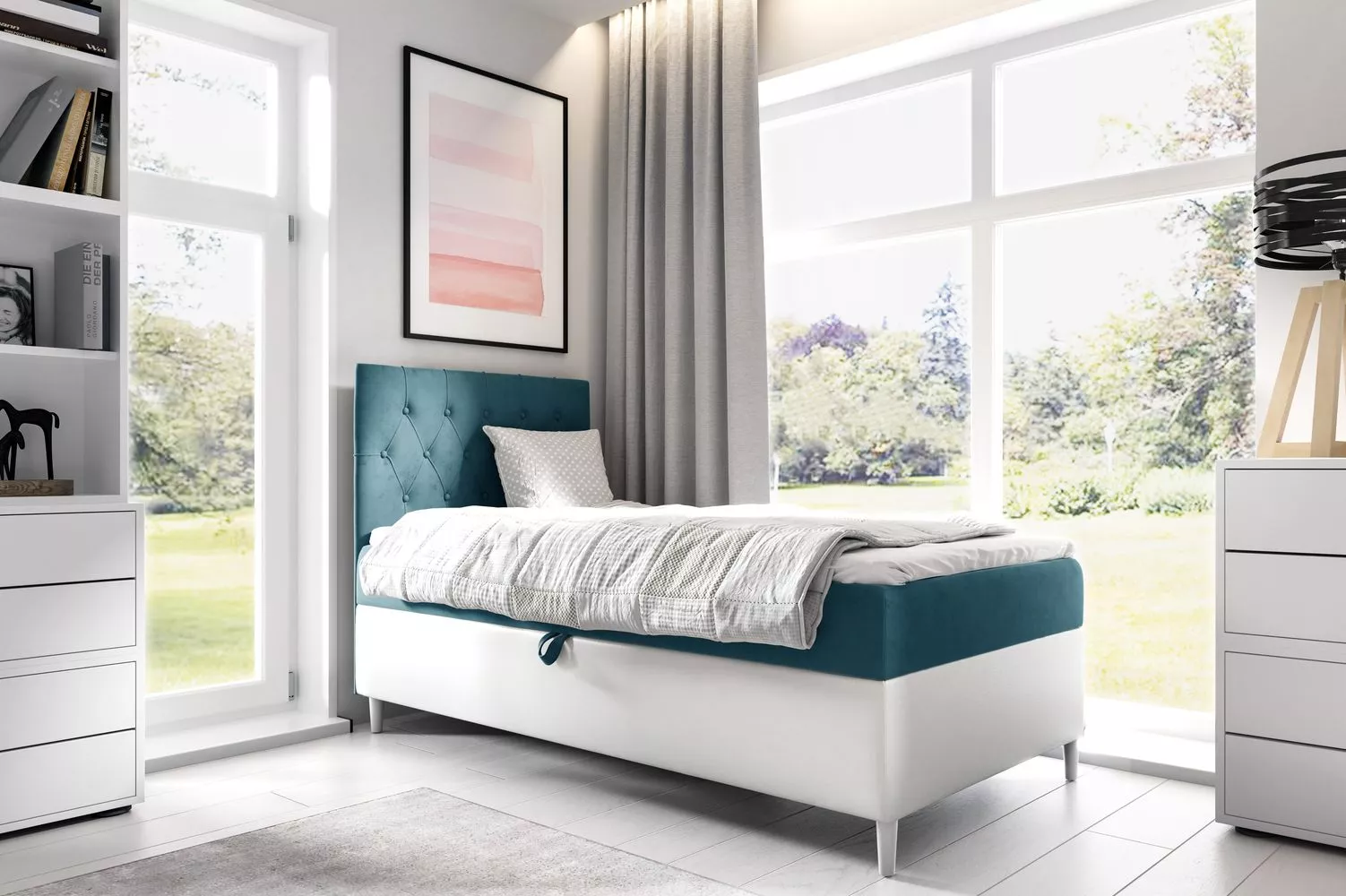 Kontinentální postel 80x200 KAILI 1 - modrá / bílá, otevírání z pravé strany + topper ZDARMA