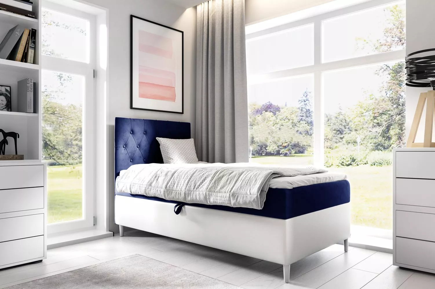 Kontinentální postel 80x200 KAILI 1 - tmavě modrá / bílá, otevírání z pravé strany + topper ZDARMA