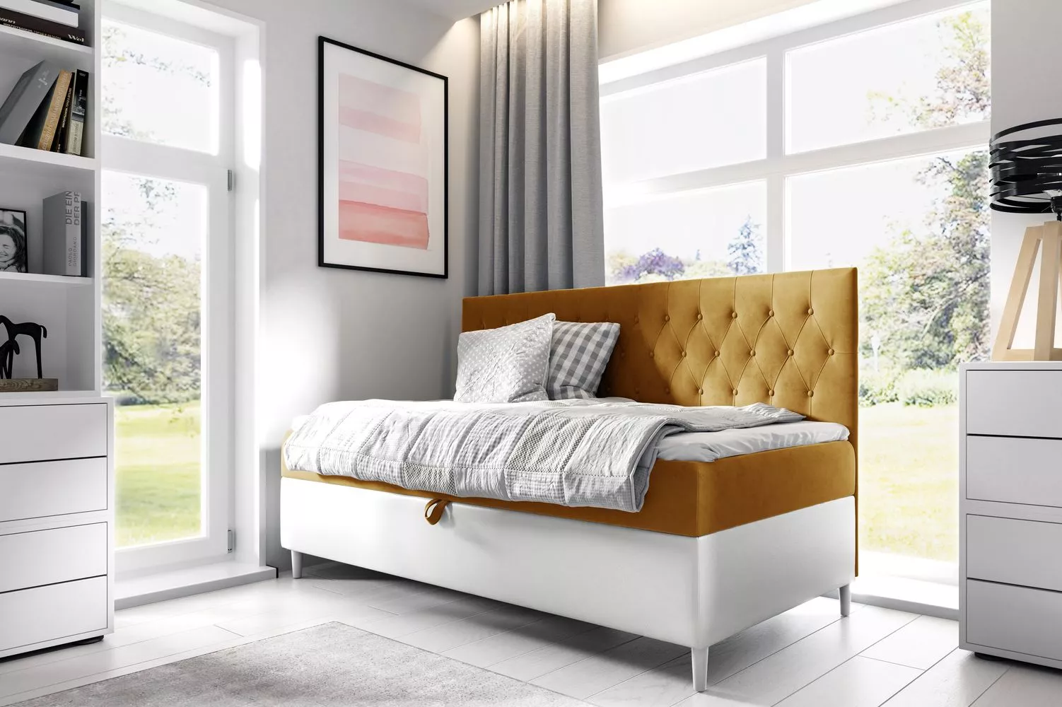 Kontinentální postel 90x200 KAILI 2 - hořčicová / bílá, otevírání z levé strany + topper ZDARMA