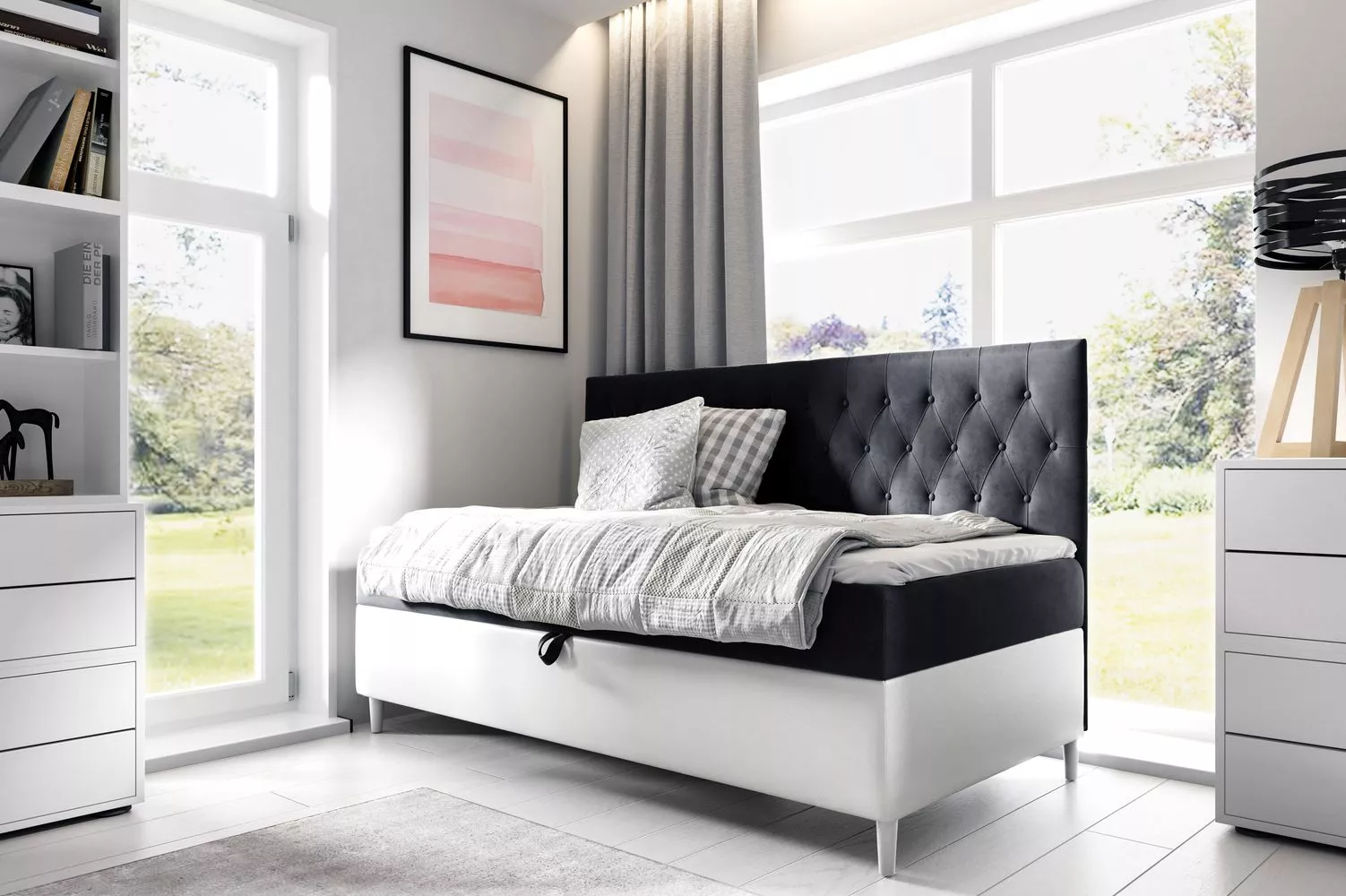 Kontinentální postel 90x200 KAILI 2 - černá / bílá, otevírání z levé strany + topper ZDARMA