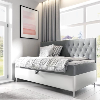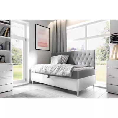 Kontinentální postel 100x200 KAILI 2 - šedá / bílá, otevírání z levé strany + topper ZDARMA
