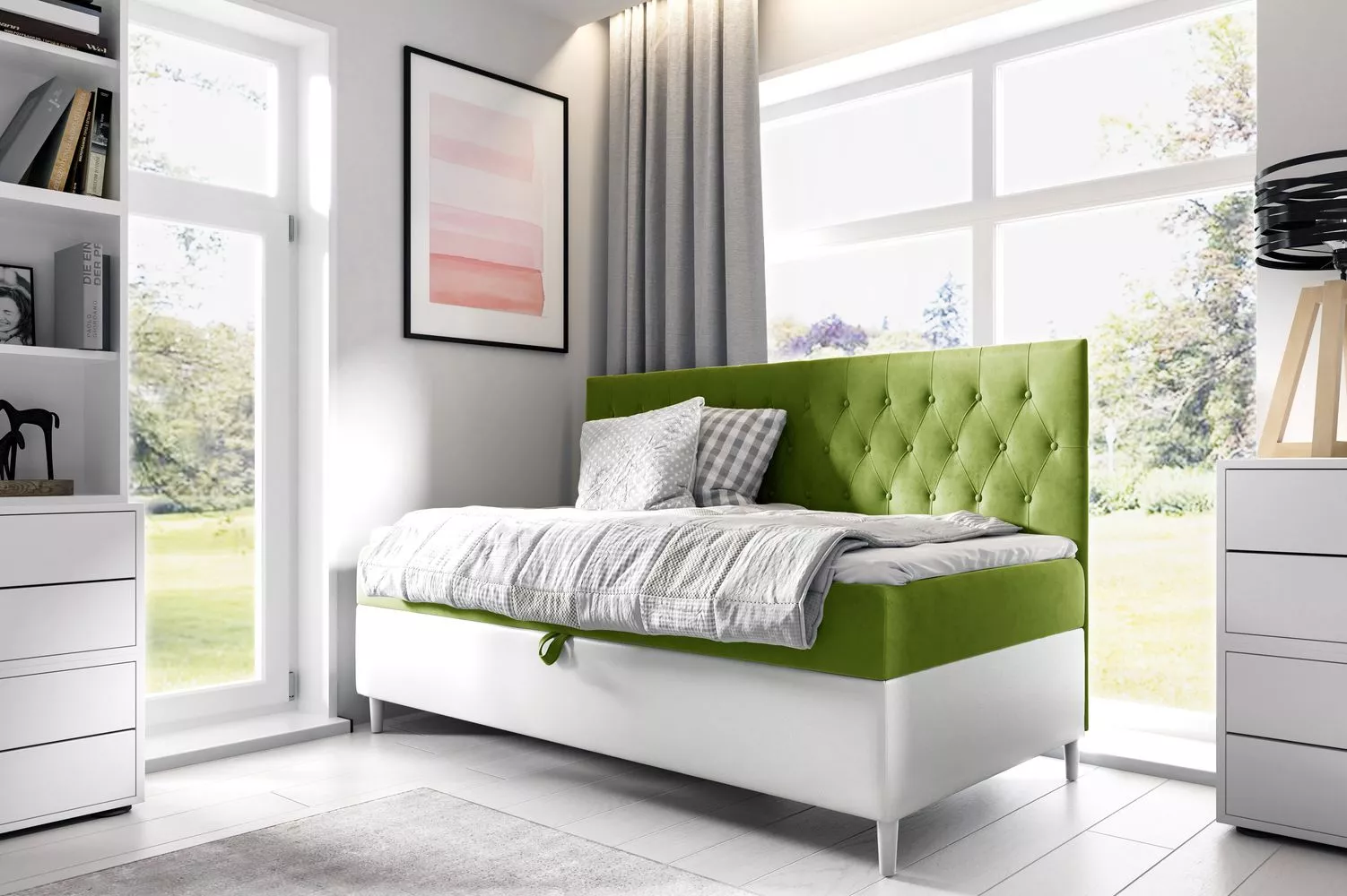 Kontinentální postel 100x200 KAILI 2 - zelená / bílá, otevírání z levé strany + topper ZDARMA
