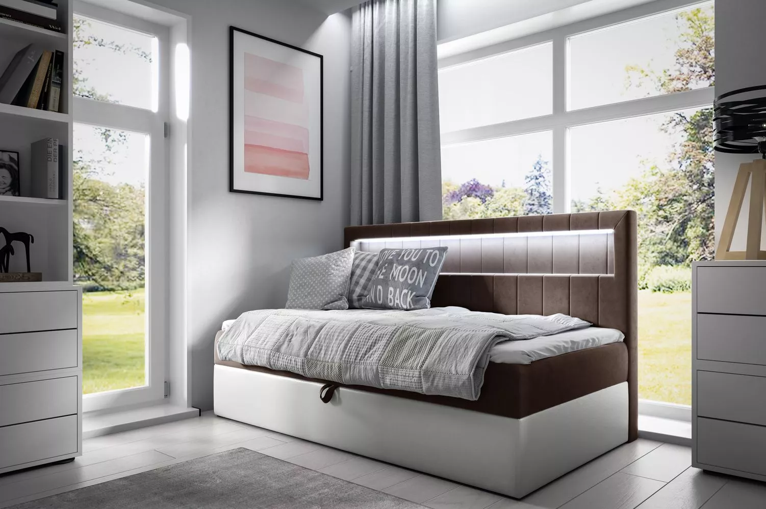 Jednolůžková postel 90x200 KISHA 2 - hnědá / bílá, otevírání z pravé strany + topper ZDARMA