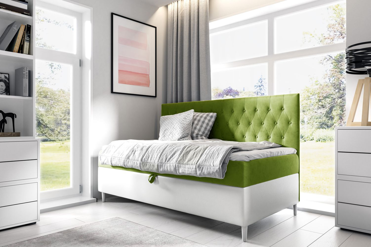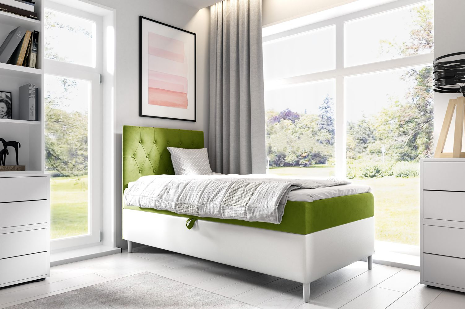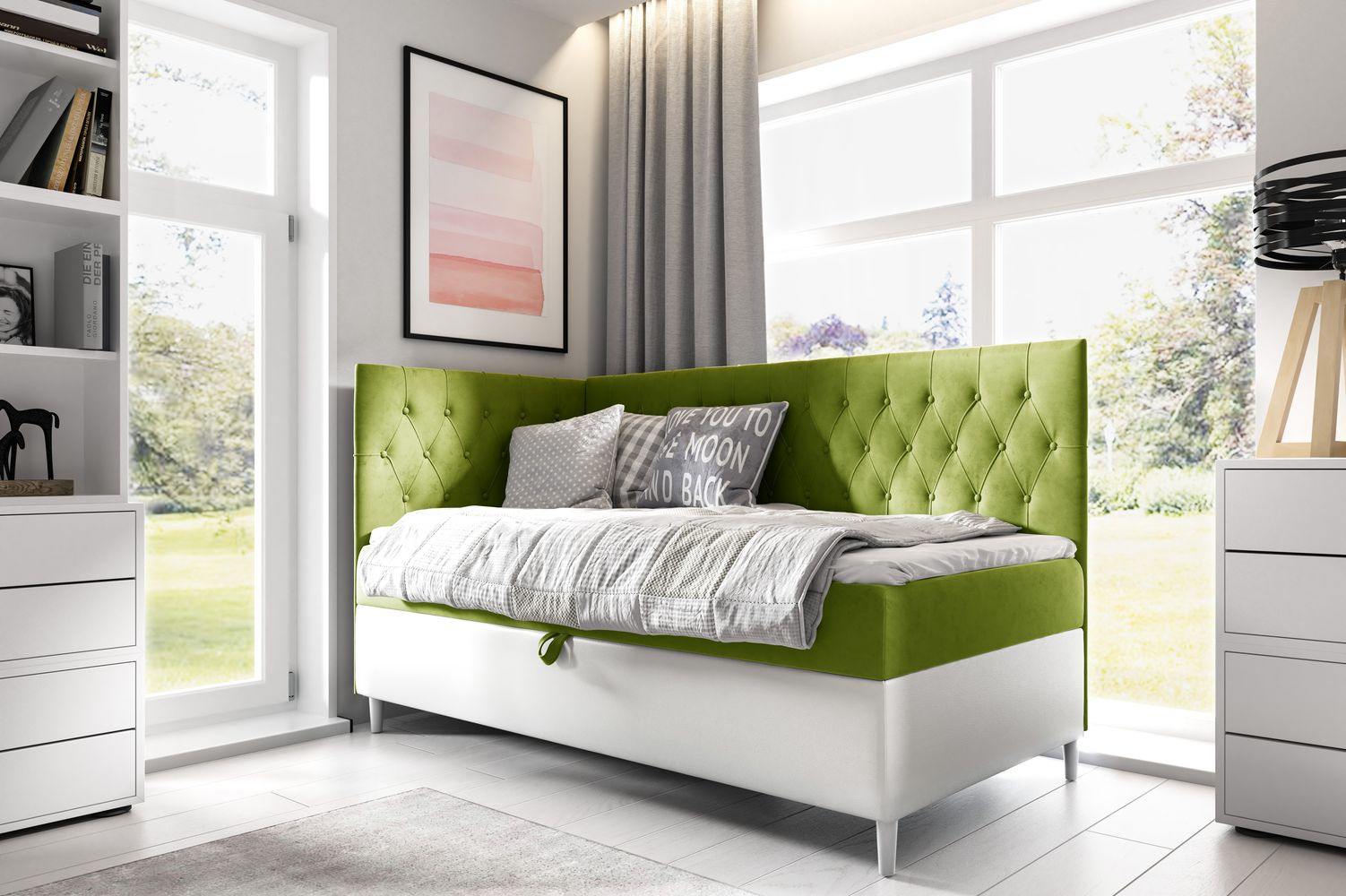 Jednolůžková postel 100x200 KISHA 1 - zelená / bílá, otevírání z levé strany + topper ZDARMA