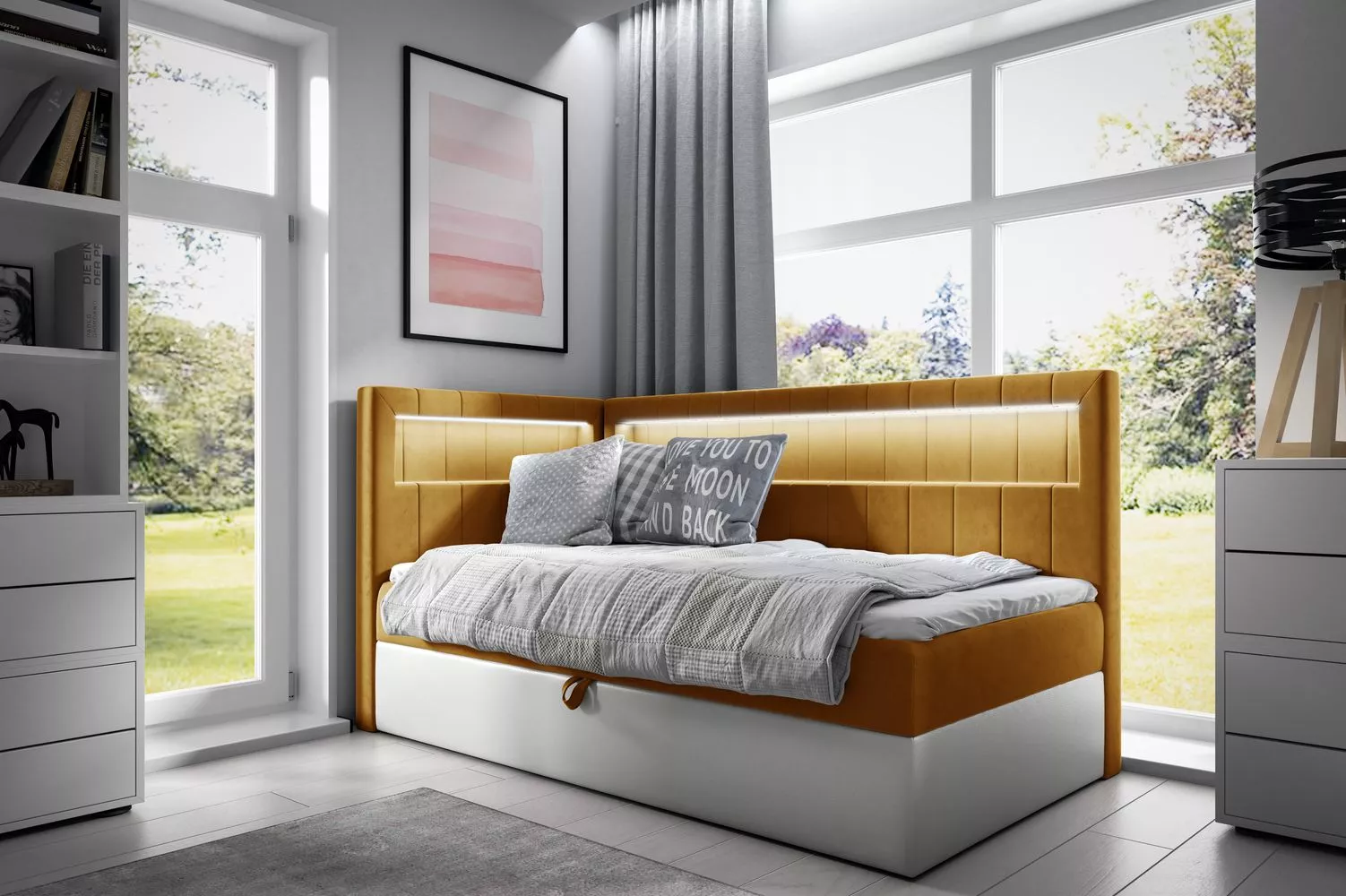 Jednolůžková postel 100x200 KISHA 3 - hořčicová / bílá, otevírání z levé strany + topper ZDARMA