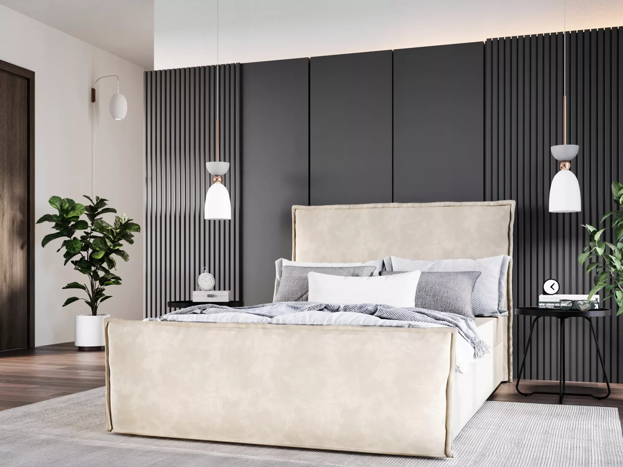 Součástí postele je zabudovaná matrace a úložný prostor. Topper k dokoupení naleznete v sekci Doporučujeme přikoupit.