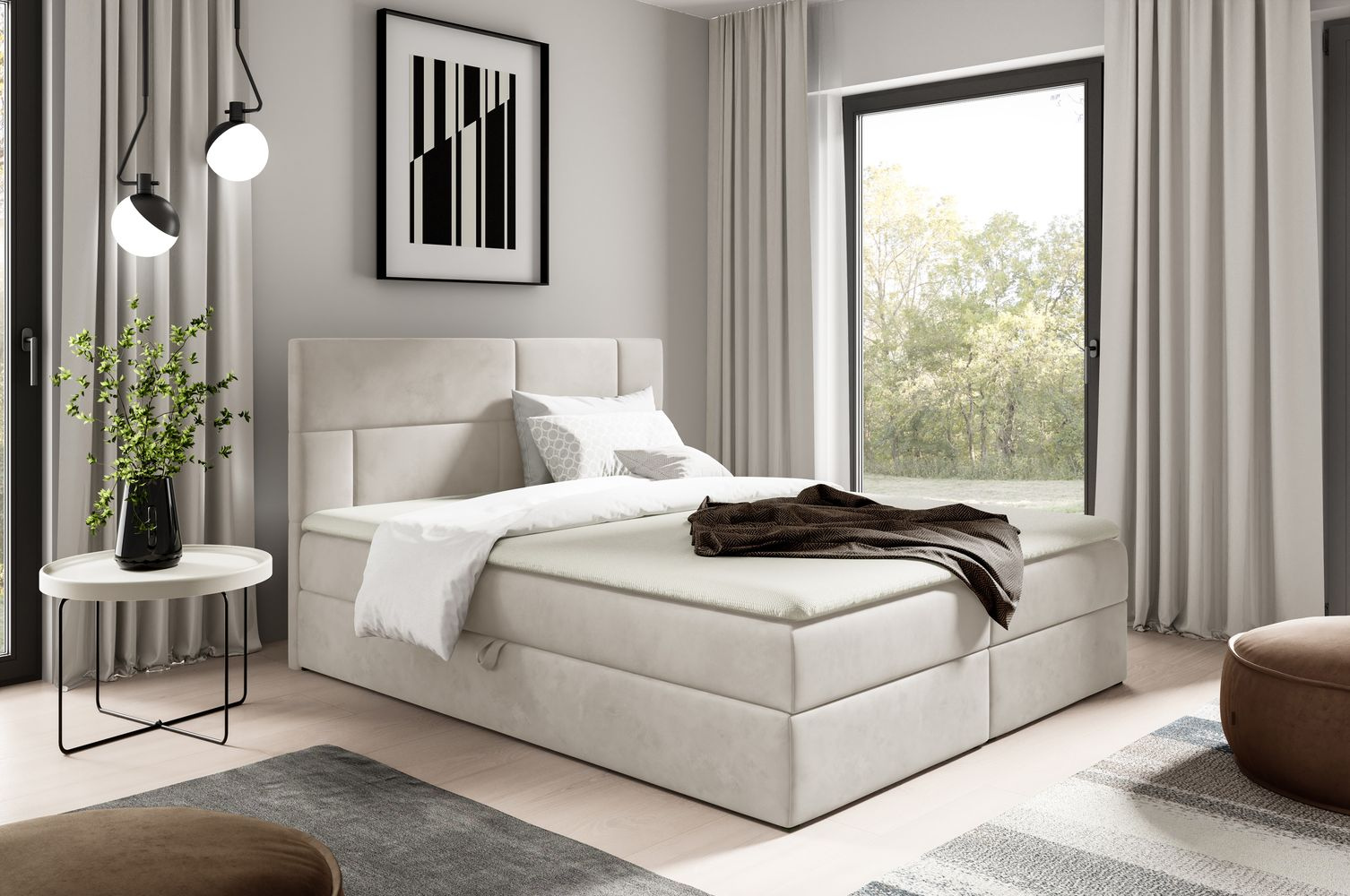 Elegantní manželská postel Caffara 120x200, béžová, jemná potahová látka