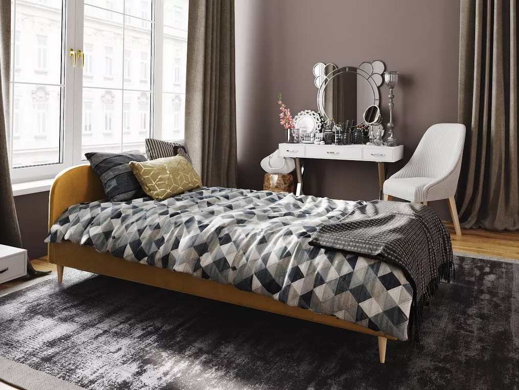 Čalouněná postel s úložným prostorem LETICIA 2 - 90x200, hořčicová