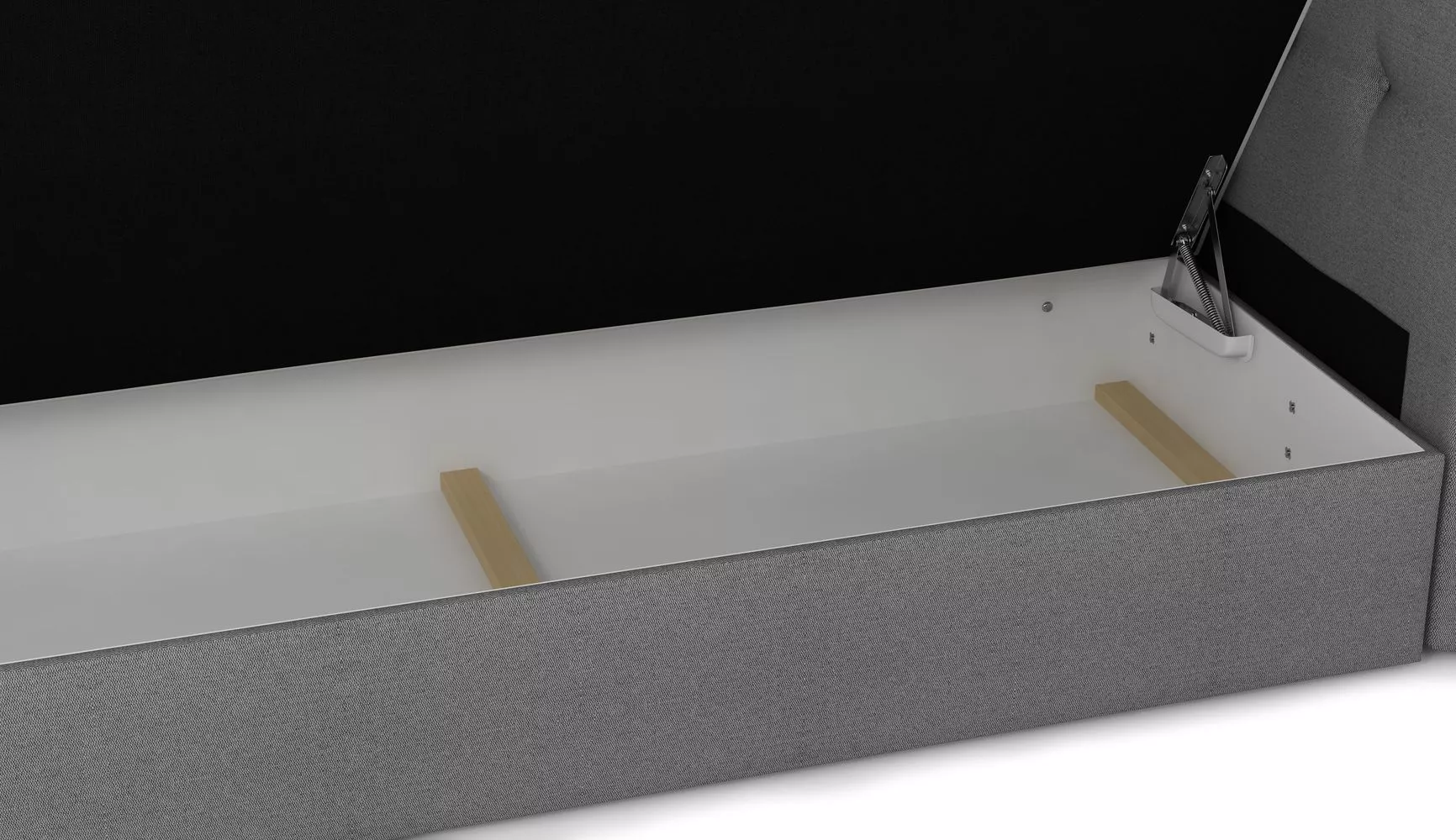 Čalouněná postel s úložným prostorem LETICIA 2 se hodí do všech moderních studentských pokojů. Čalouněné čelo zamezí poškrábání a zašpinění zdi. Postel disponuje úložným prostorem umístěným pod vyklápěcím roštem.