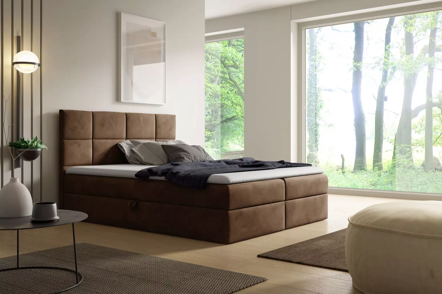 Kontinentální postel 120x200 DINARA s úložným prostorem - tmavě hnědá + topper ZDARMA