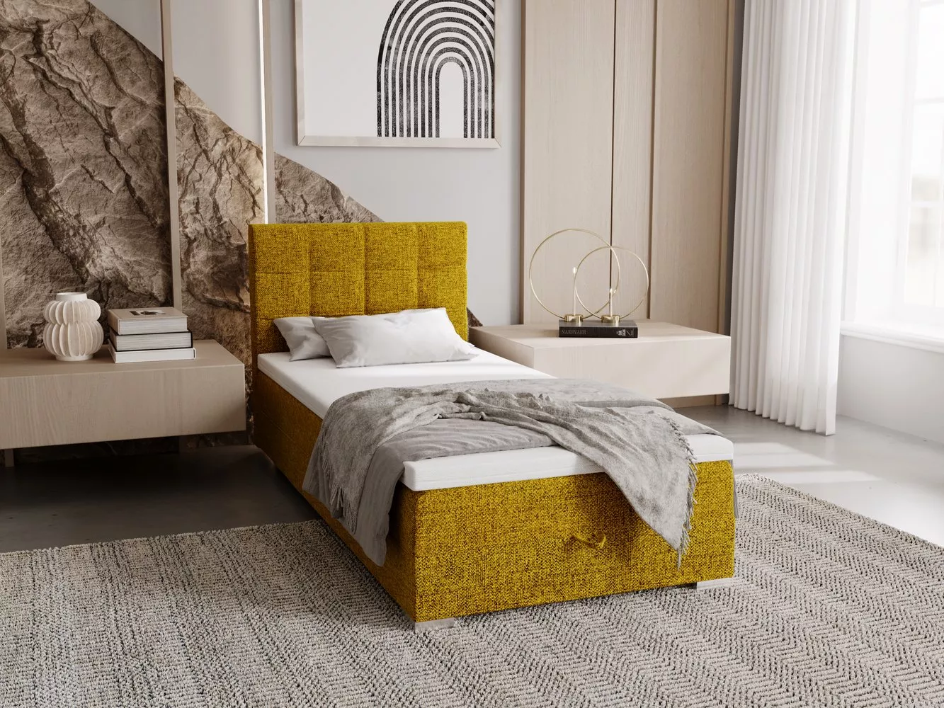 Čalouněná postel 90x200 ELSIE 2 s úložným prostorem - hořčicová, pravé provedení