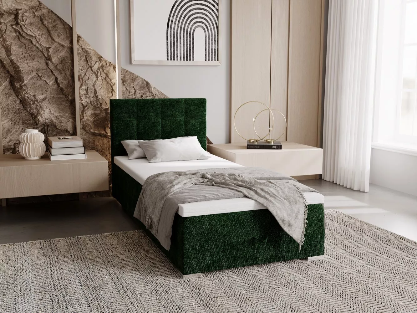 Čalouněná postel 90x200 ELSIE 2 s úložným prostorem - zelená, pravé provedení