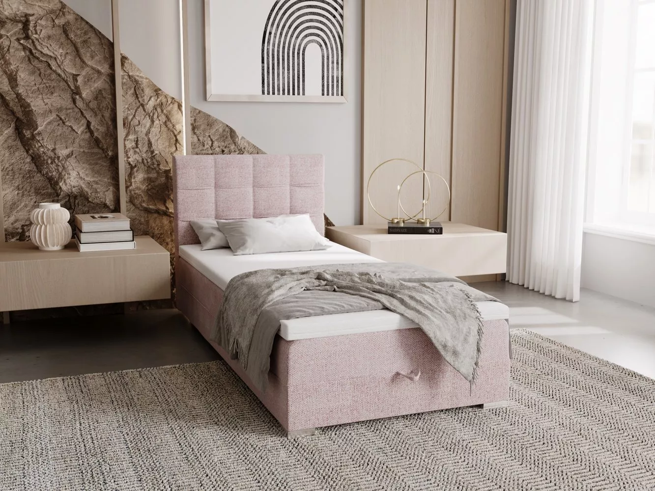 Čalouněná postel 90x200 ELSIE 2 s úložným prostorem - růžová, levé provedení