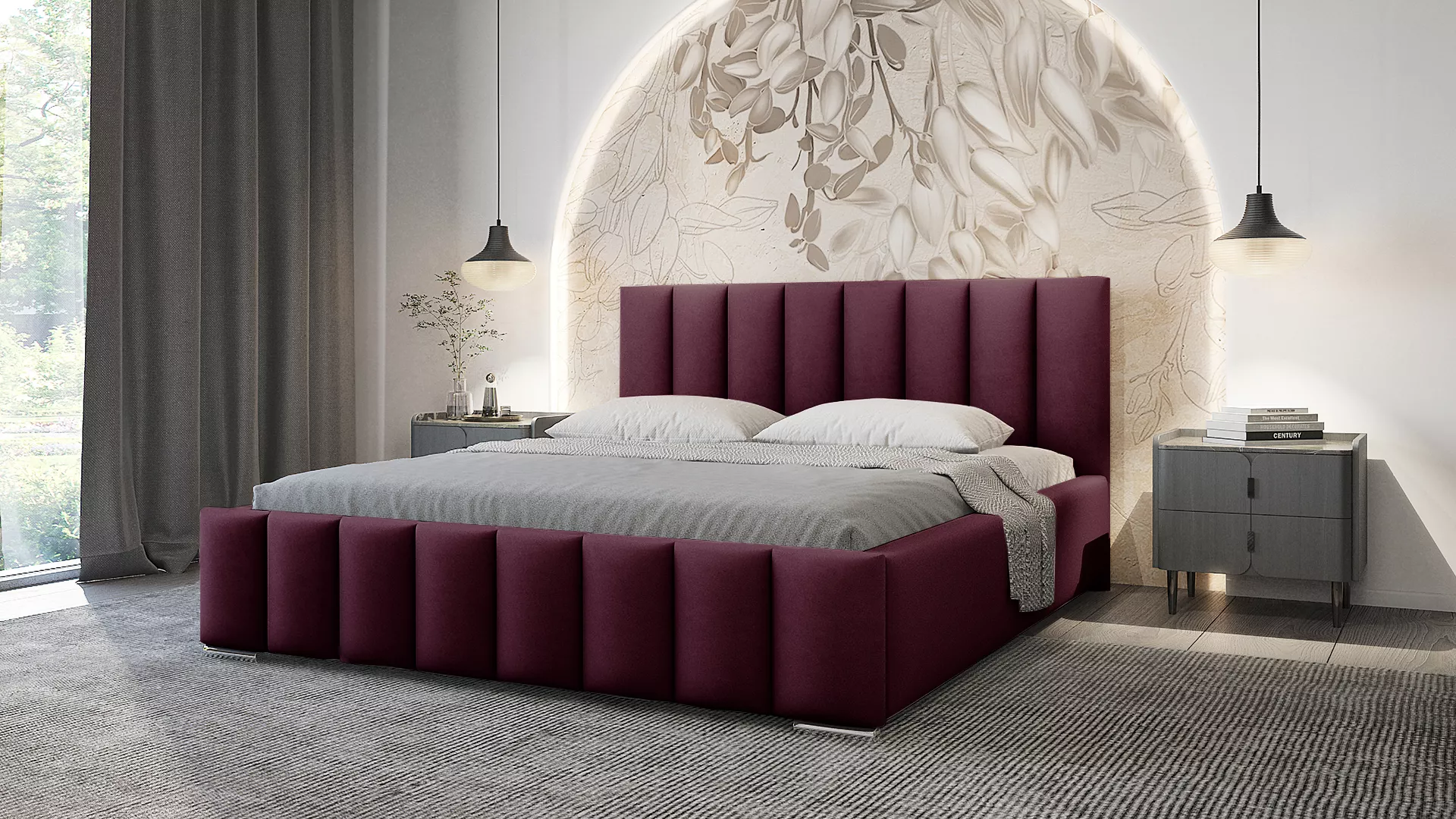 Elegantní čalouněná postel 120x200 MADALENA 1 s úložným prostorem - vínová