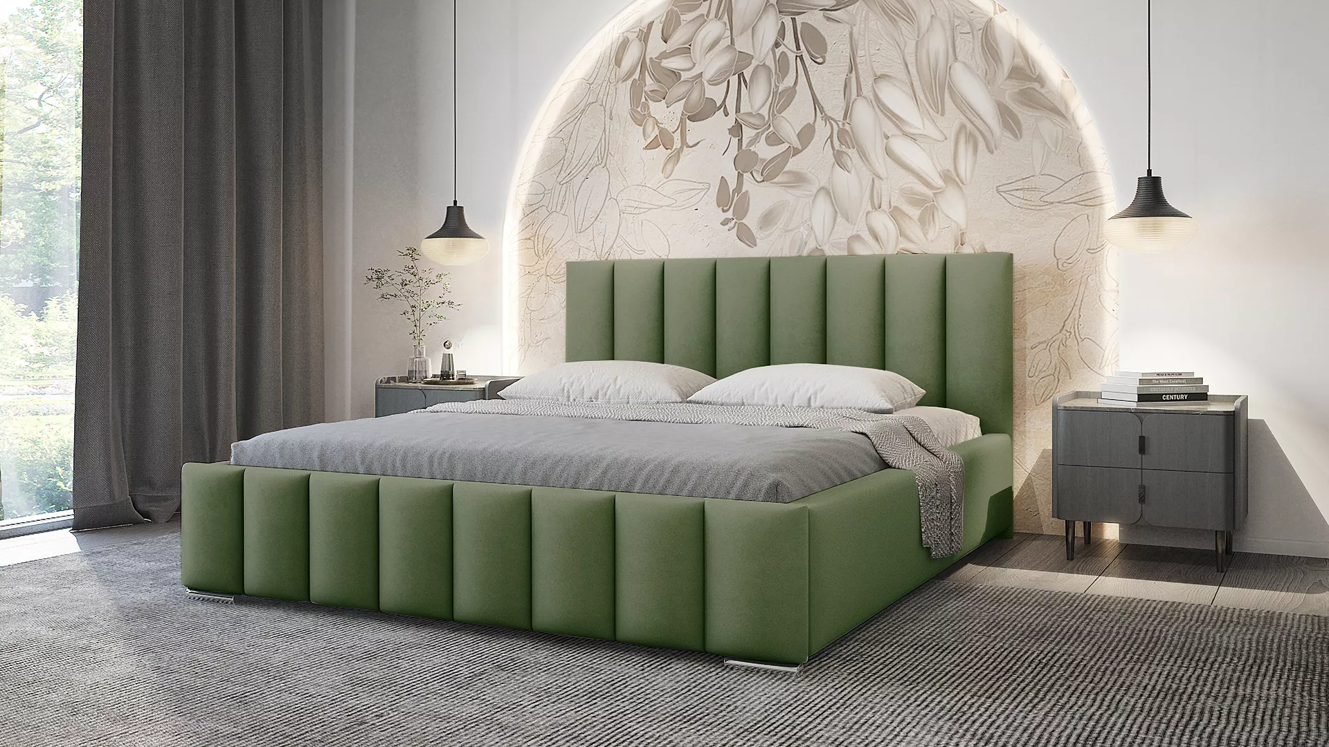 Elegantní čalouněná postel 120x200 MADALENA 1 s úložným prostorem - khaki