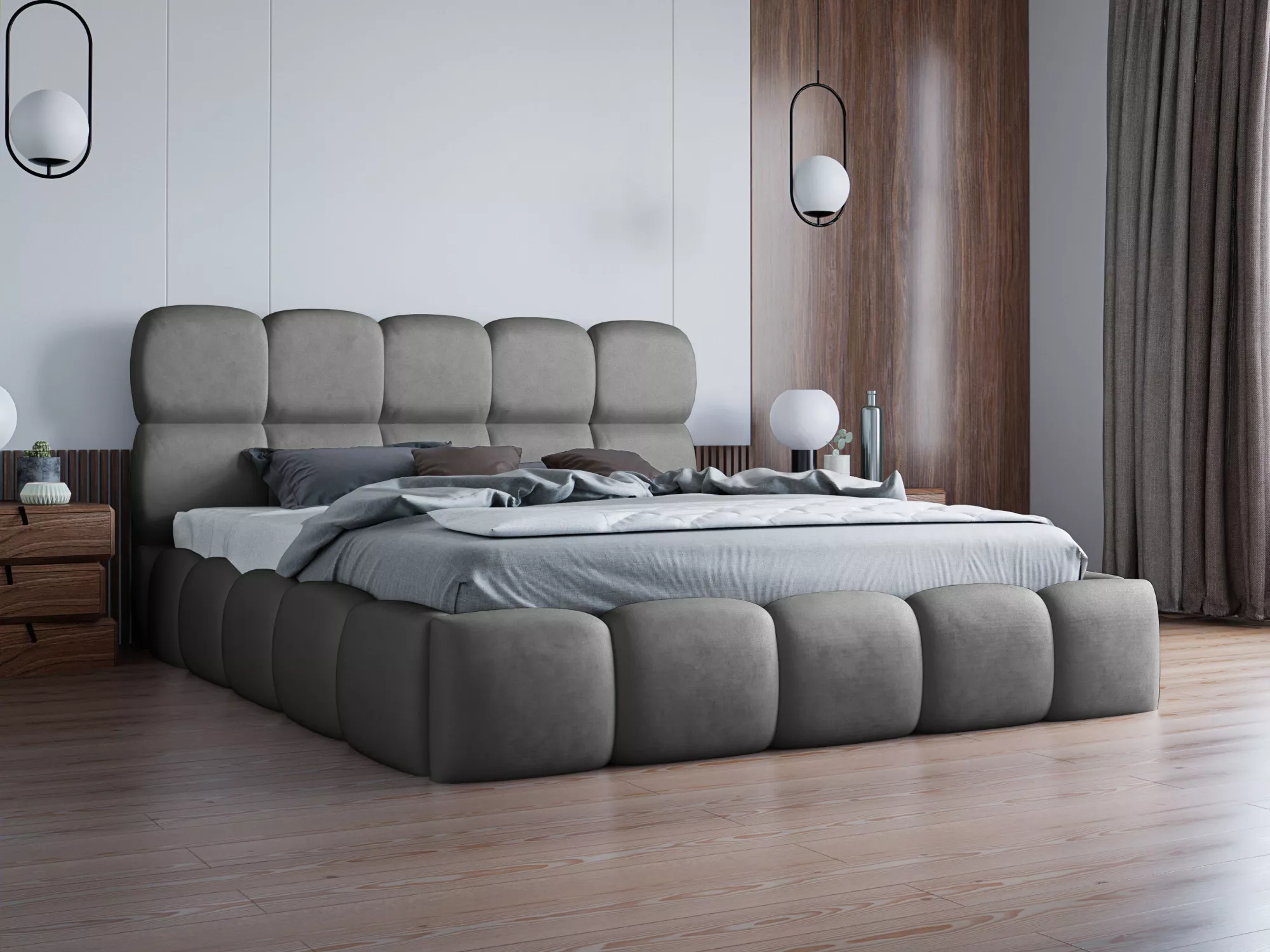 Čalouněná postel 120x200 ALZIRA 1 s úložným prostorem kombinuje moderní design, praktičnost a pohodlí. Rafinované vyšší čelo poskytuje příjemný komfort při čtení knih nebo sledování televize.