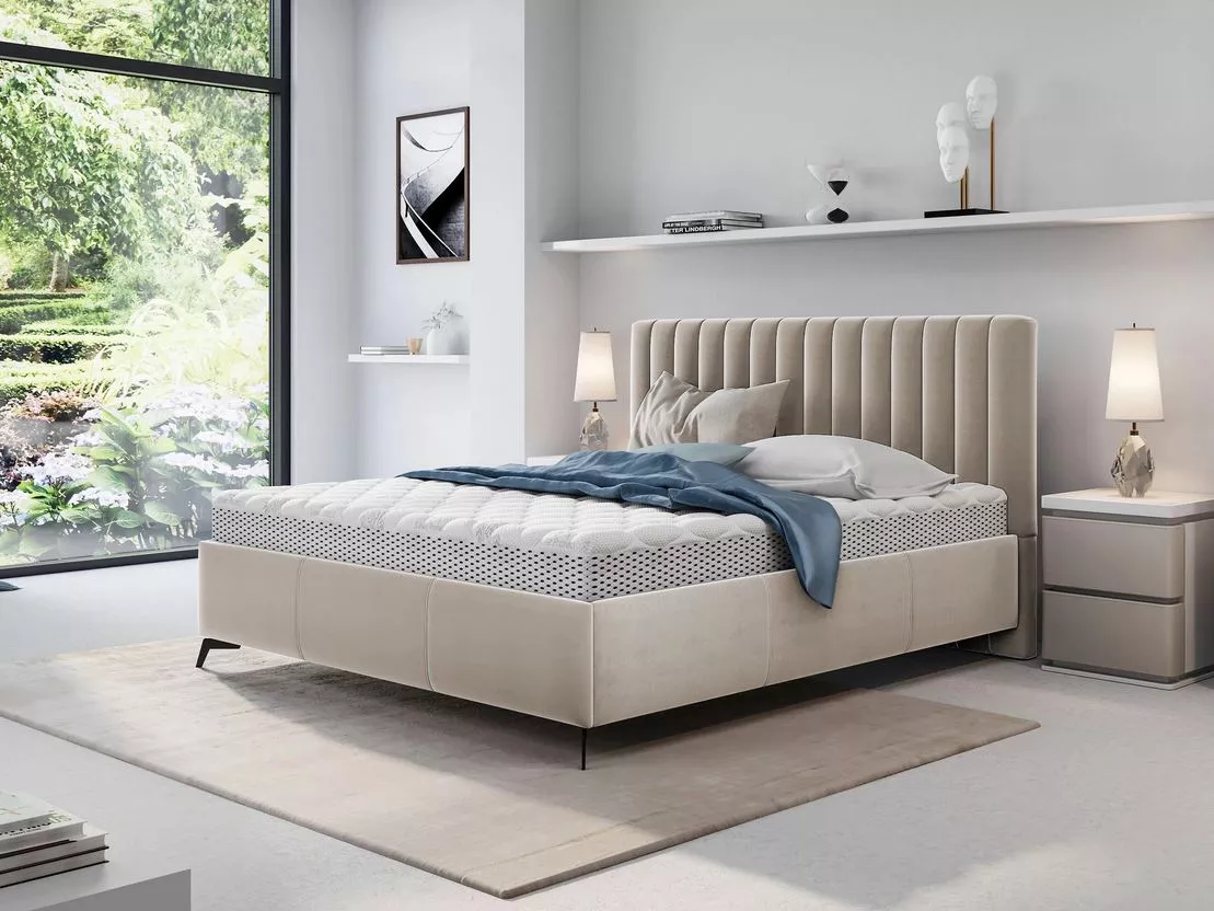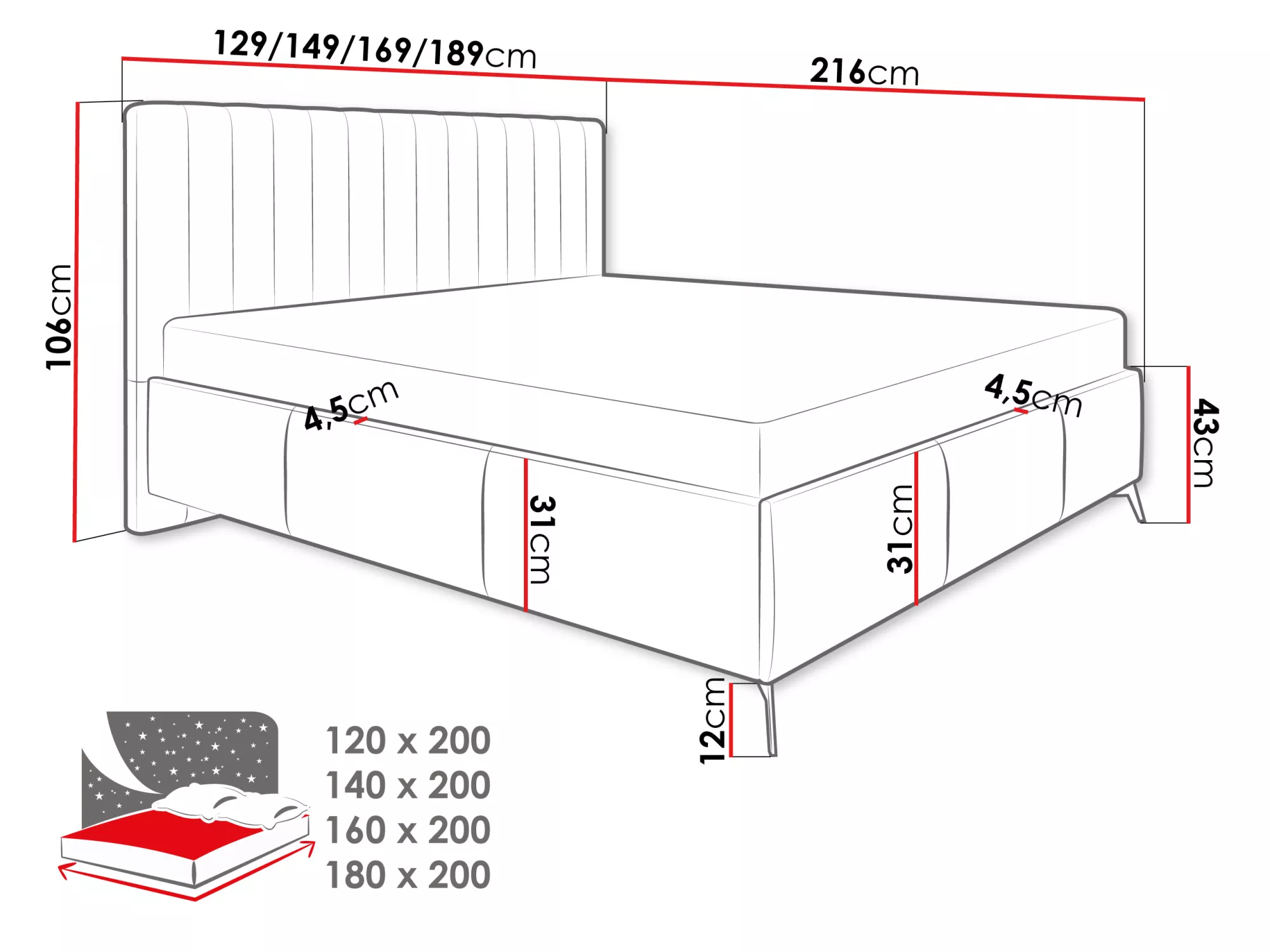Jednolůžková postel TANIX o spací ploše 120x200 cm je vybavena měkkým a pohodlným čelem a praktickým úložným prostorem na lůžkoviny. Pozoruhodným detailem postele jsou vysoké černé nohy, které podtrhují moderní charakter postele a usnadňují udržování pořádku.