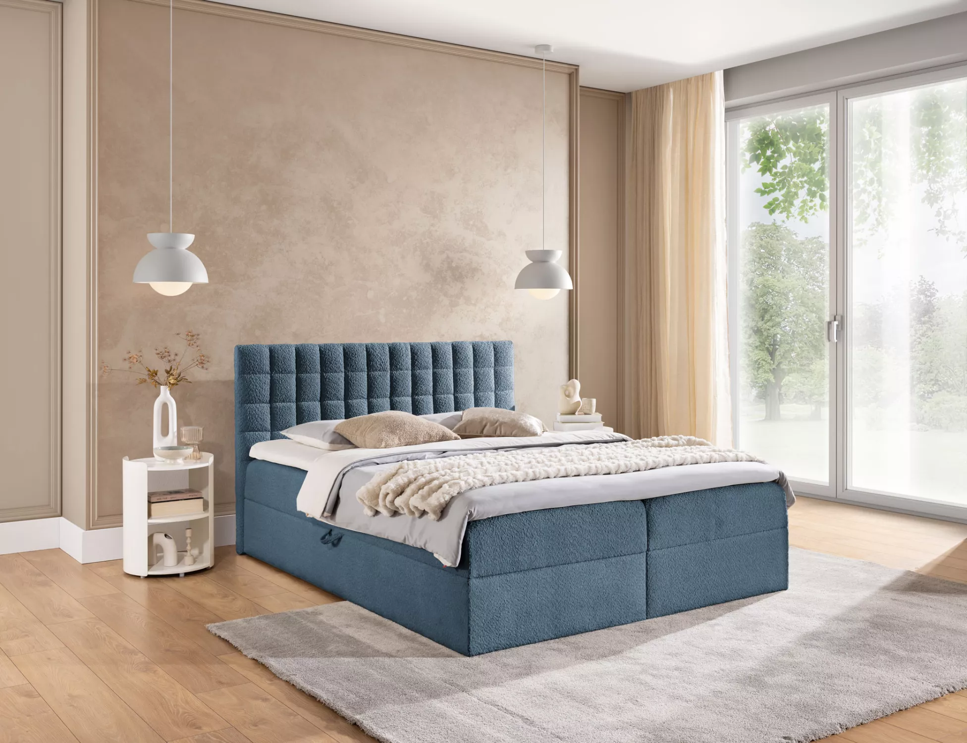 Jednolůžková boxspringová postel 120x200 SALOMA - modrá + topper