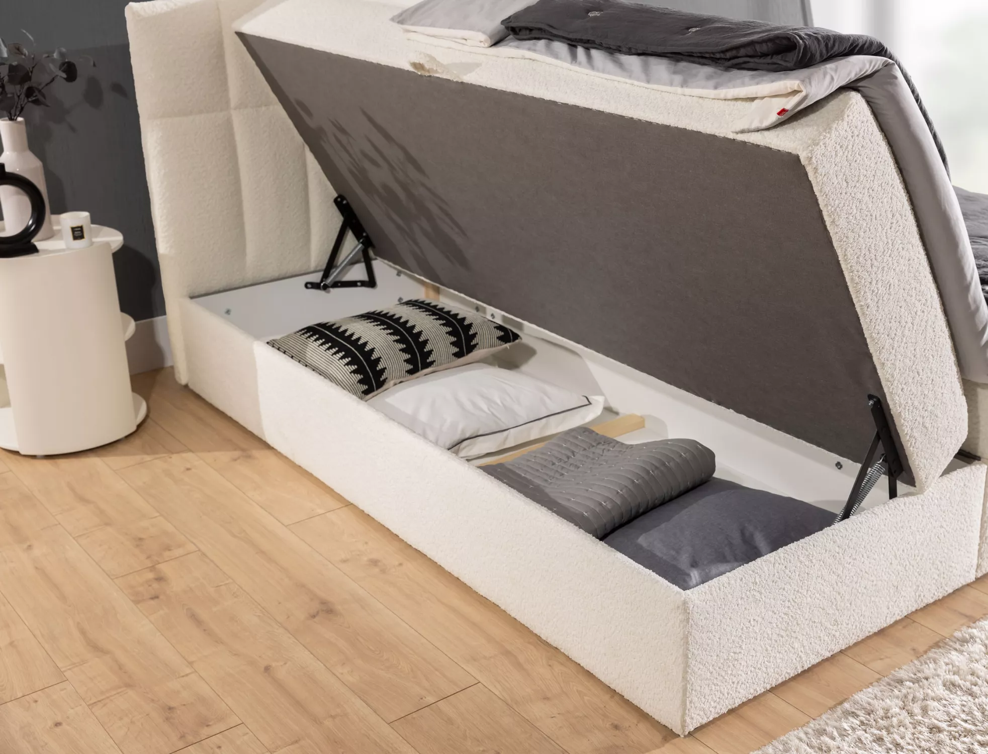Jednolůžková čalouněná postel 120x200 ALIBINA se hodí do všech studentských pokojů. Vyšší prošívané čalouněné čelo zamezí poškrábaní či zašpinění zdi. Nechybí ani praktický úložný prostor.
