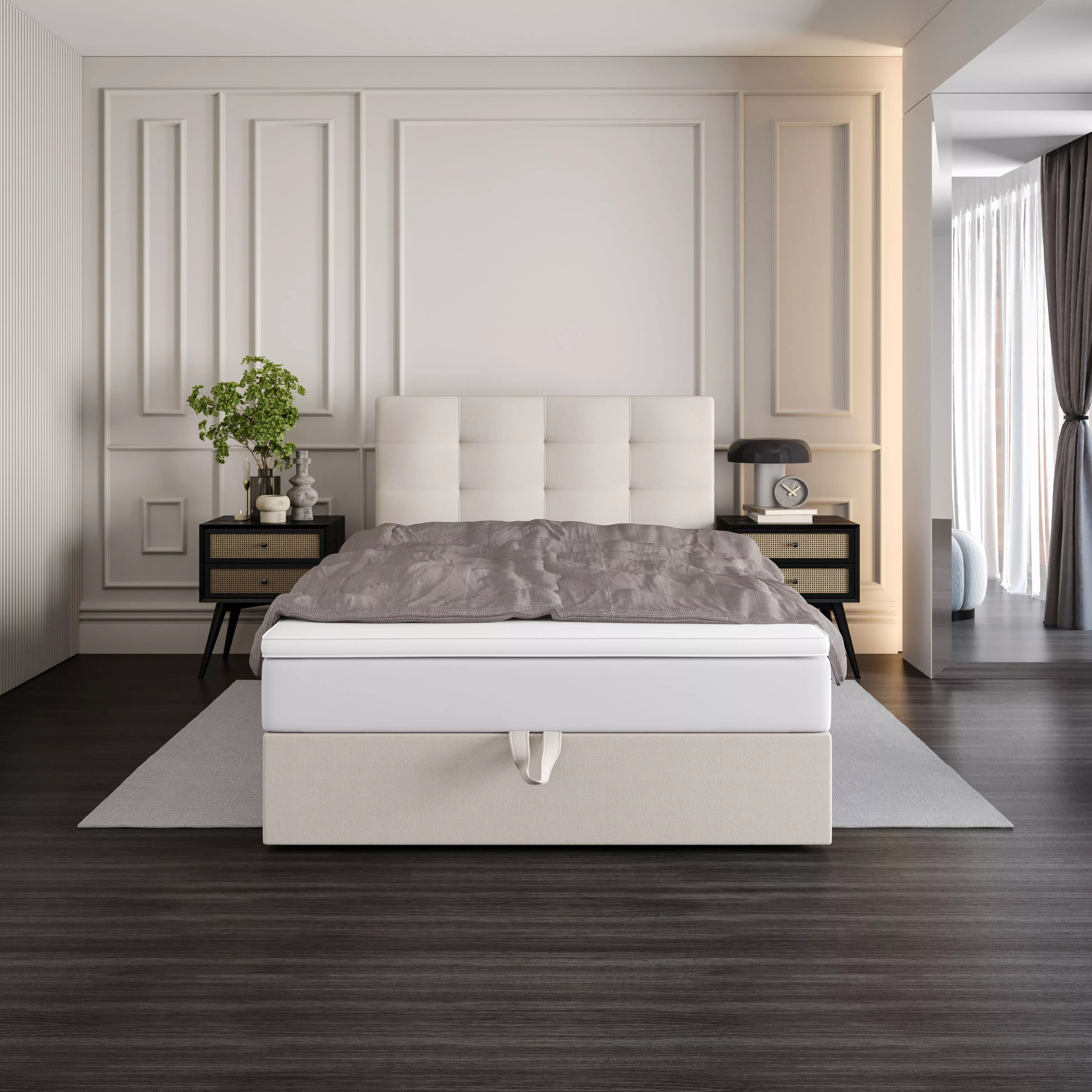 Součástí postele je zabudovaná matrace a úložný prostor. Postel dodáváme bez vyobrazeného topperu.