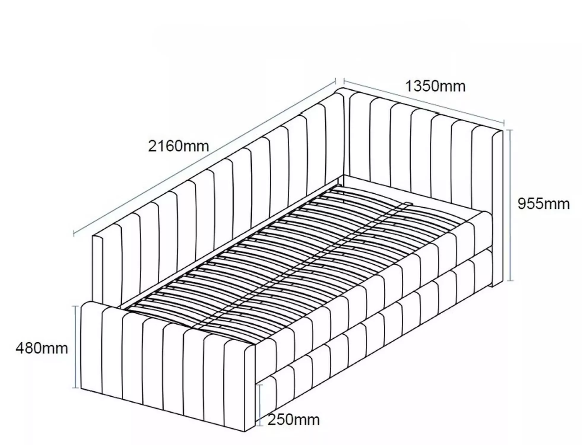 Rozkládací jednolůžková postel 120x200 VALLY bude ideální volbou do všech dětských a studentských pokojů. Měkké čalounění s prošíváním dodává posteli moderní vzhled a útulný charakter. Vysoké čelo zabrání poškrábání a zašpinění zdi.
