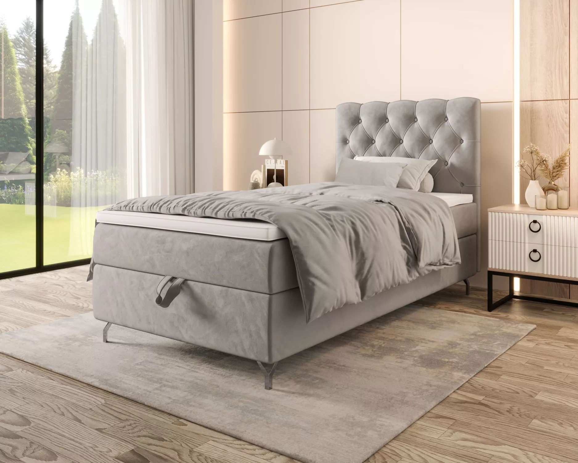 Čalouněná boxspringová postel 90x200 ADRIA 2 - světle šedá