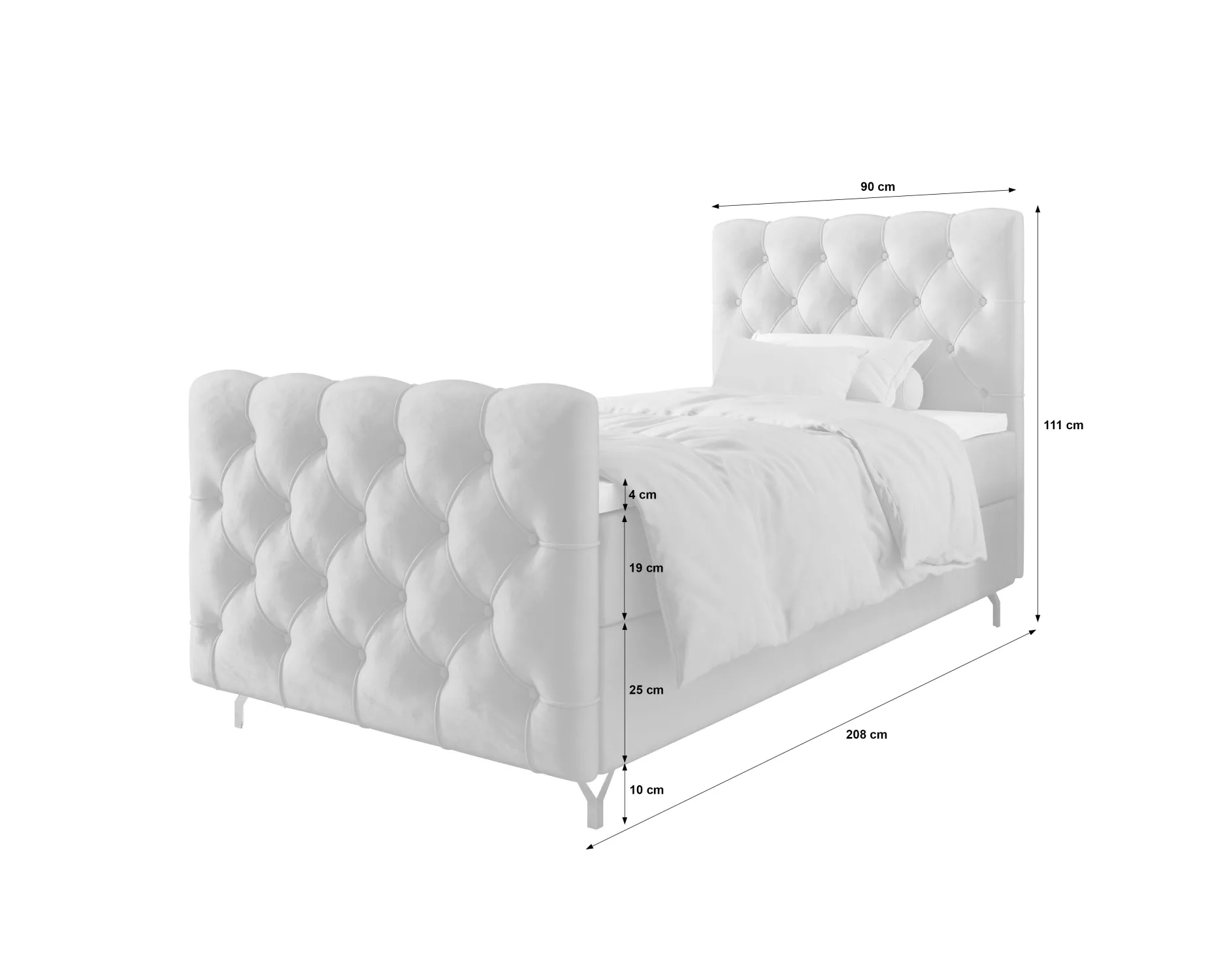 Čalouněná boxspringová postel 90x200 ADRIA PLUS 2 na první pohled zaujme svým designově prošívaným čelem. Postel disponuje prostorným úložným prostorem pro uložení lůžkovin nebo sezónního oblečení. Čalouněné čelo zamezí poškrábání a poškození zdi.