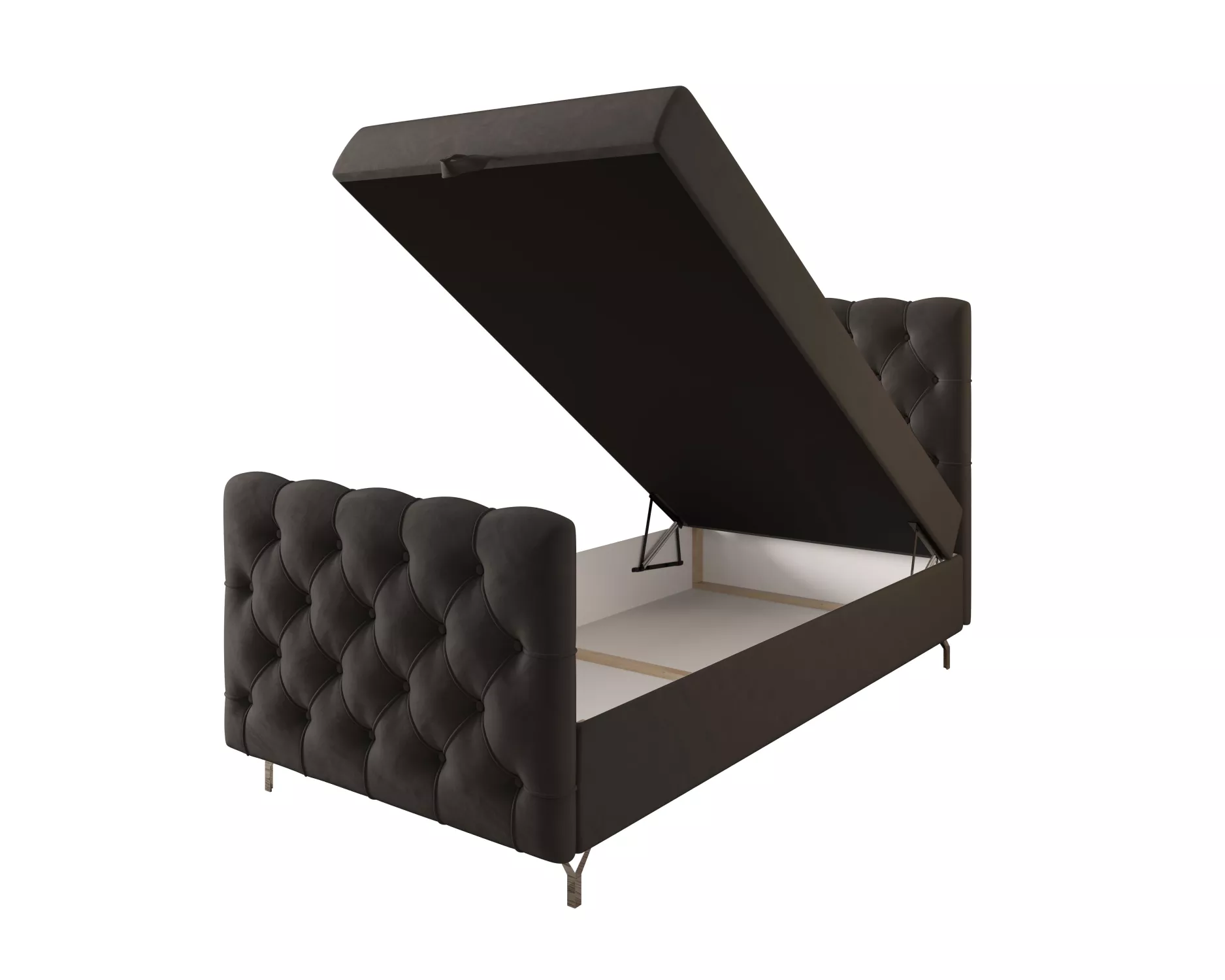 Součástí postele je zabudovaná matrace a úložný prostor. Postel dodáváme bez vyobrazeného topperu. Vhodné modely k dokoupení najdete v sekci Doporučujeme přikoupit.