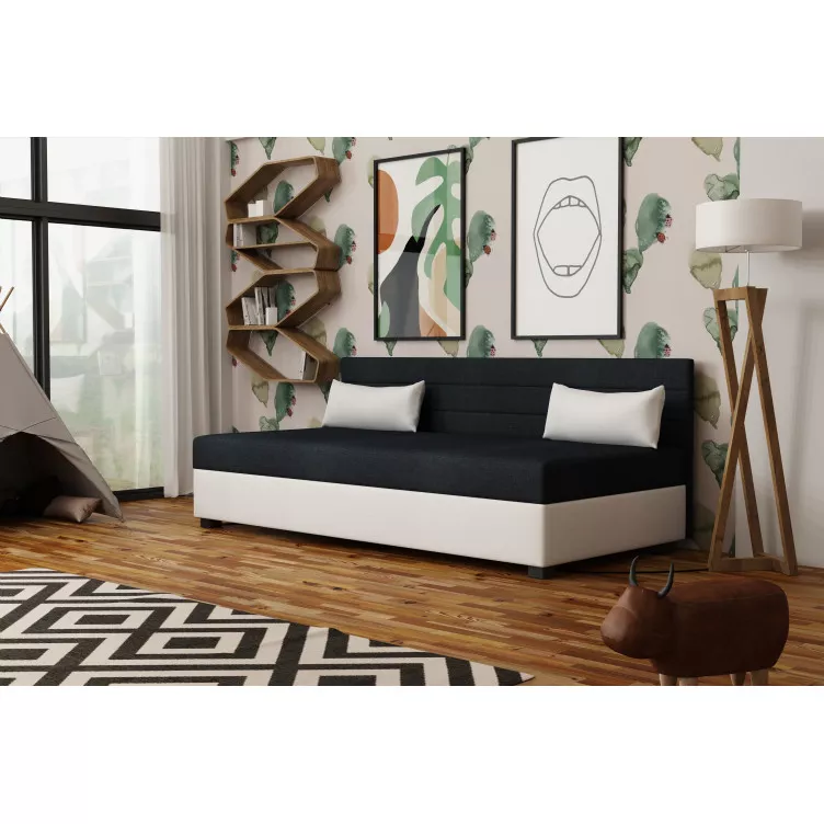 Čalouněná jednolůžková postel 100x195 PETTY 2 - černá / krémová