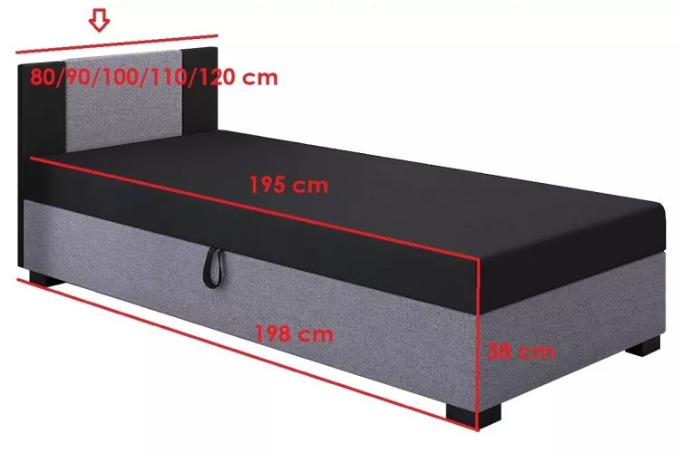 Jednolůžková postel MERY 1 vám zajistí pohodlný spánek. Prošívané čelo chrání stěnu před znečištěním. Nechybí ani praktický úložný prostor na lůžkoviny.