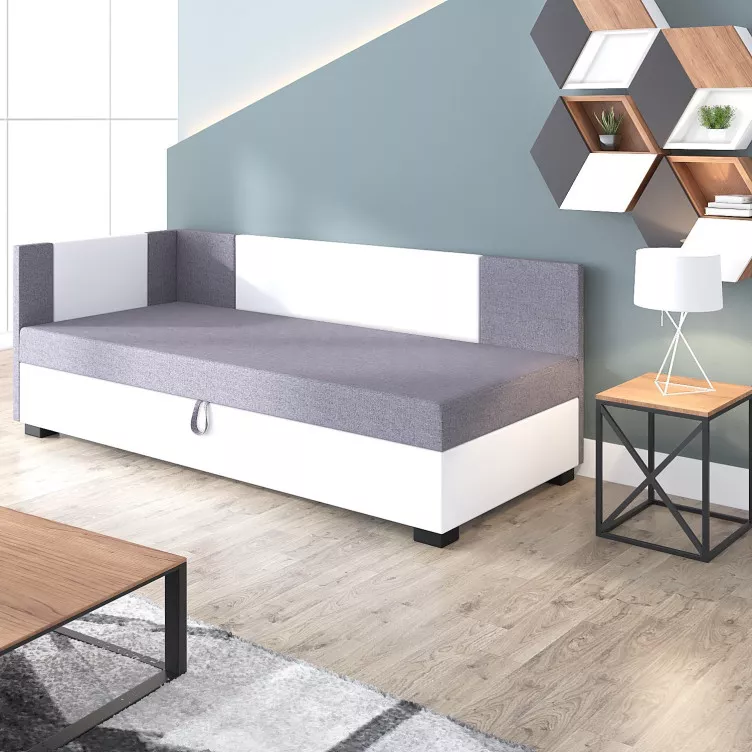 Jednolůžková postel MERY PLUS 1 se hodí do všech moderních pokojů. Disponuje úložným prostorem umístěným pod vyklápěcím roštem. Čalouněné čelo zamezí poškrábaní a zašpinění zdi.
