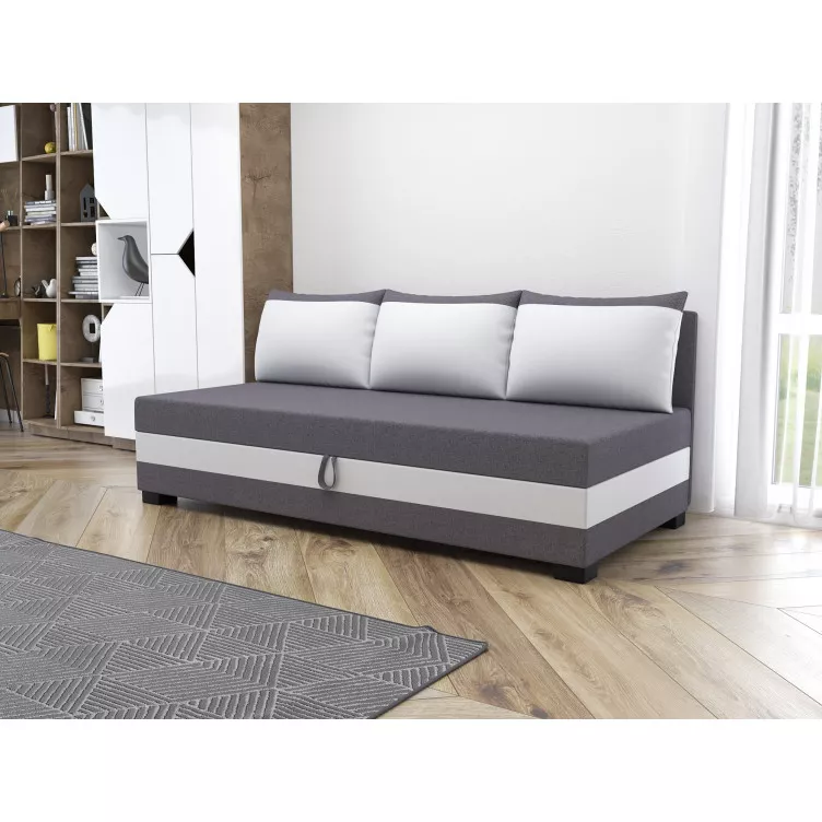 Jednolůžková postel MIRRY BIZ 2 poslouží jako pohodlný gauč i postel. Čalouněné čelo doplněné polštáři zajistí pohodlné opírání. Lůžkoviny lze umístit do praktického úložného prostoru.