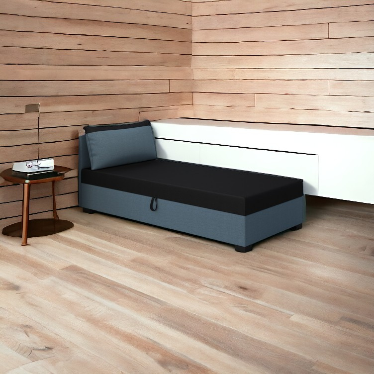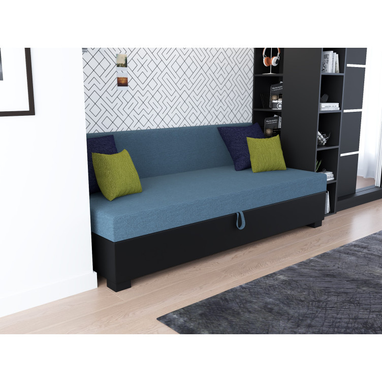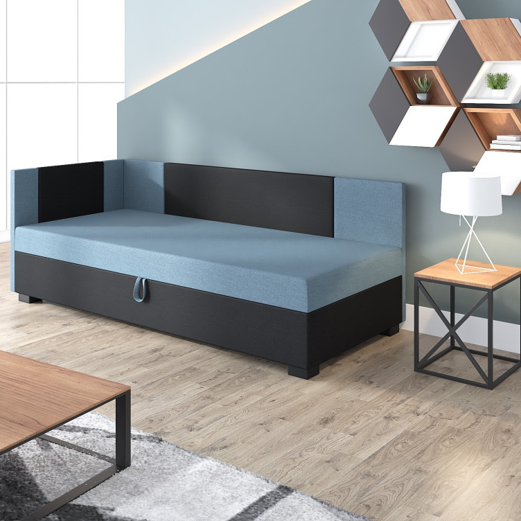 Jednolůžková postel MIRRY BIZ 2 poslouží jako pohodlný gauč i postel. Čalouněné čelo doplněné polštáři zajistí pohodlné opírání. Lůžkoviny lze umístit do praktického úložného prostoru.
