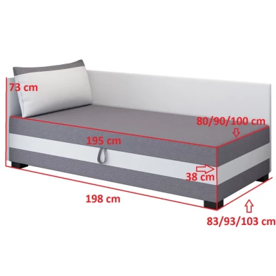 Jednolůžková postel MIRRY PLUS 1 poslouží jako pohodlný gauč i postel. Čalouněné čelo doplněné polštáři zajistí pohodlné opírání. Lůžkoviny lze umístit do praktického úložného prostoru.