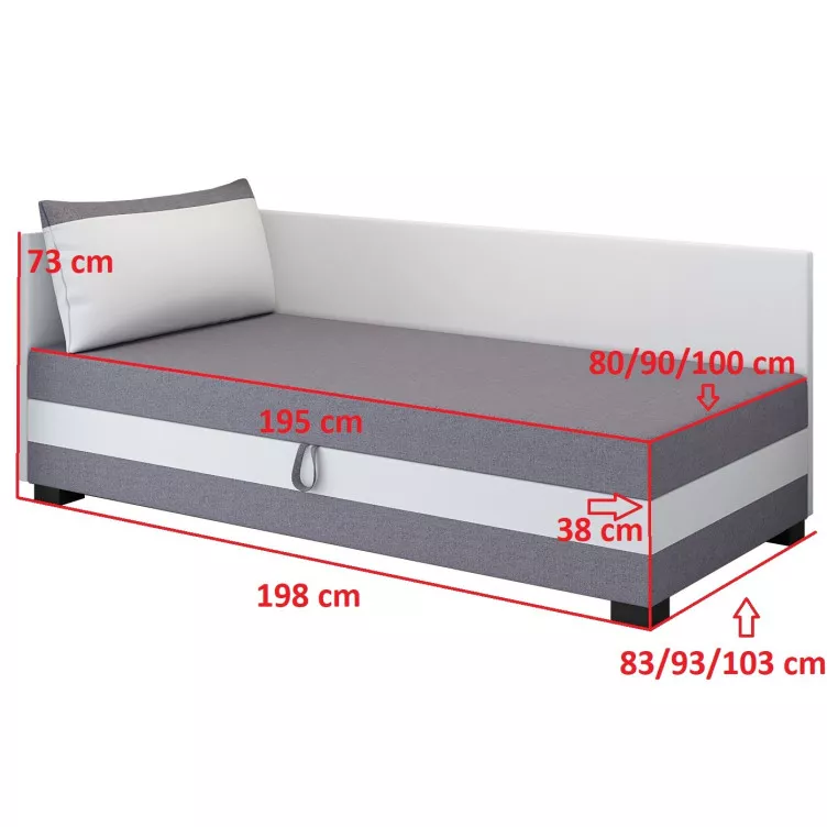 Jednolůžková postel MIRRY PLUS 1 poslouží jako pohodlný gauč i postel. Čalouněné čelo doplněné polštáři zajistí pohodlné opírání. Lůžkoviny lze umístit do praktického úložného prostoru.
