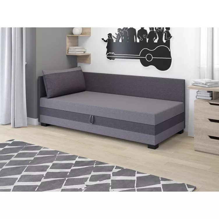 Jednolůžková postel MIRRY PLUS 1 poslouží jako pohodlný gauč i postel. Čalouněné čelo doplněné polštáři zajistí pohodlné opírání. Lůžkoviny lze umístit do praktického úložného prostoru.