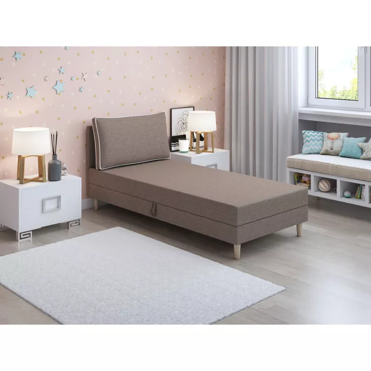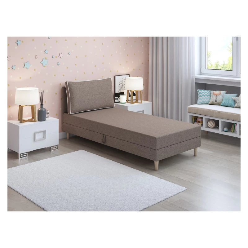 Čalouněné jednolůžko 100x195 ZORYNA 2 s úložným prostorem - světle hnědé