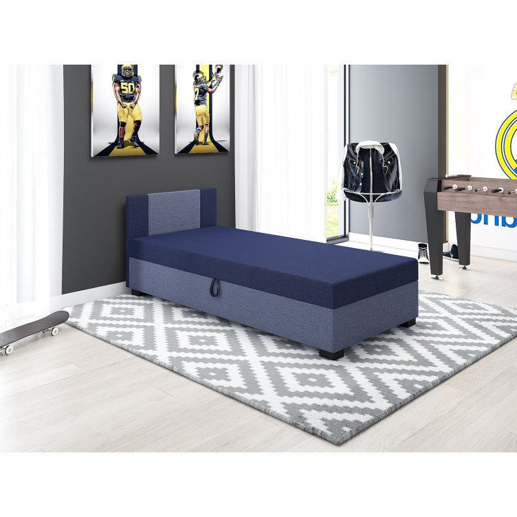 Čalouněné jednolůžko 90x195 ZORYNA 2 s úložným prostorem - modré