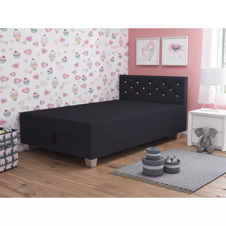 Jednolůžková postel FREDERIKA 2 má jednoduchý, ale elegantní design. Čelo zdobené krystalky chrání stěnu před znečištěním. Postel má úložný prostor pro úschovu ložního prádla.